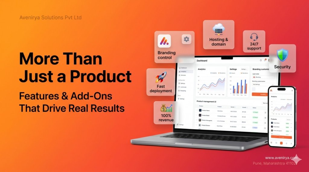 Along with ready-to-sell products, Avenirya includes essential features such as branding control, hosting, domain, support, security, and fast deployment. These are not optional extras. They are part of what makes the solution practical for real business use.
